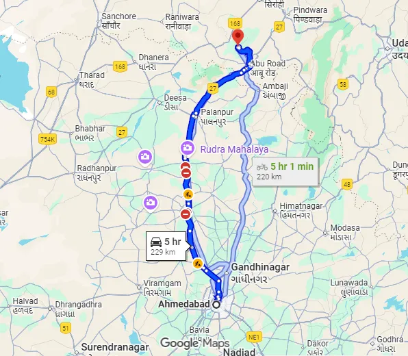 Ahmedabad to Abu Distance