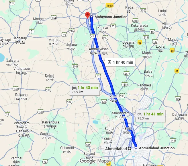 The Ahmedabad to Mehsana distance is around 75 km, and the journey takes approximately 1.5 to 2 hours by road. The most preferred route is via NH47, offering smooth roads and minimal traffic.